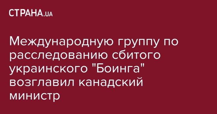 Международную группу по координации расследования крушения украинского самолета в Иране возглавил министр иностранных дел Канады Франсуа-Филипп Шампань. Об этом говорится на сайте правительства Канады.