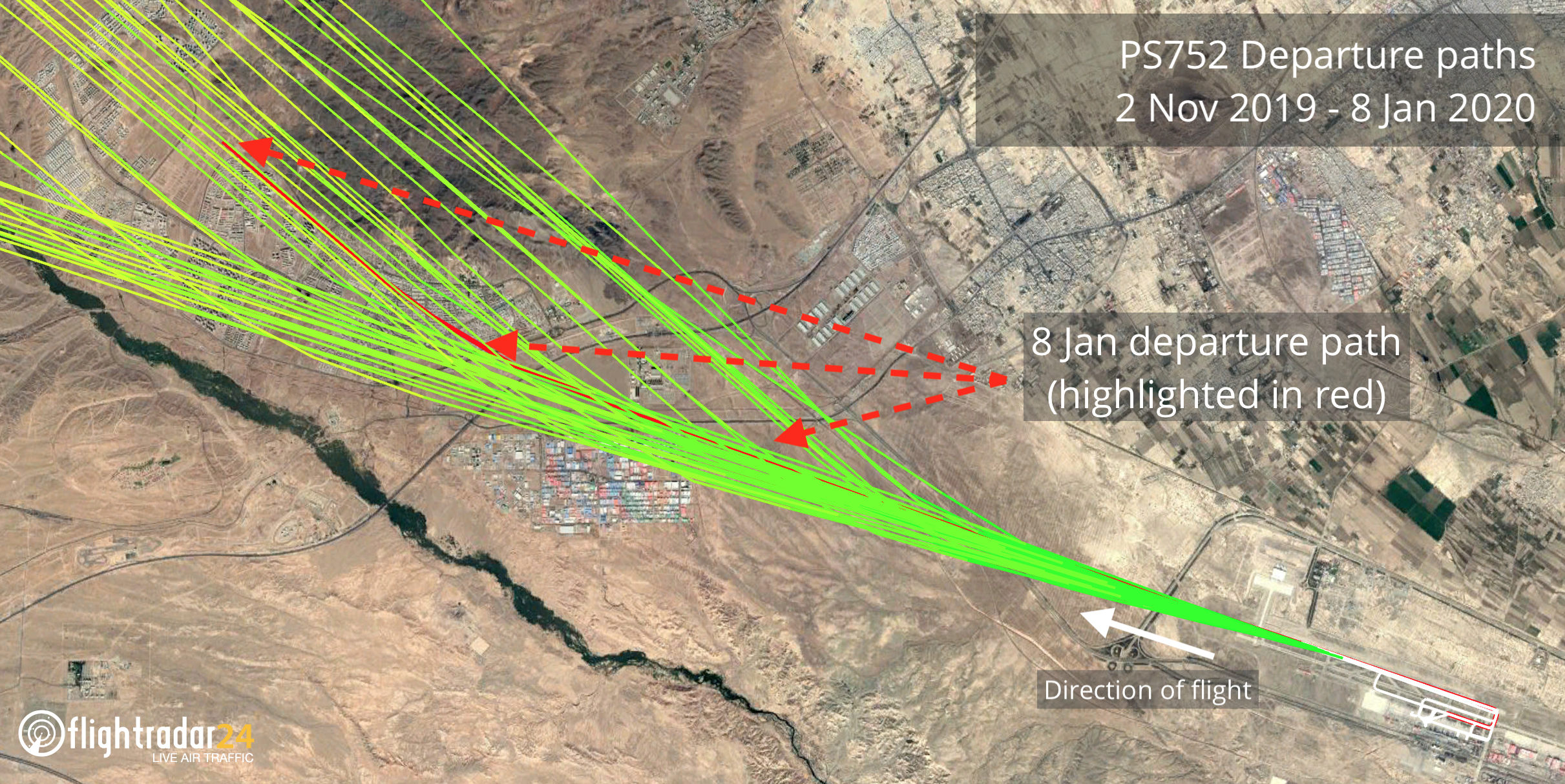 Он также продемонстрировал данные сервиса Flihtradar, по которому маршрут "Боинга" 8 января соответствовал движению других самолетов, вылетавших в этот день.