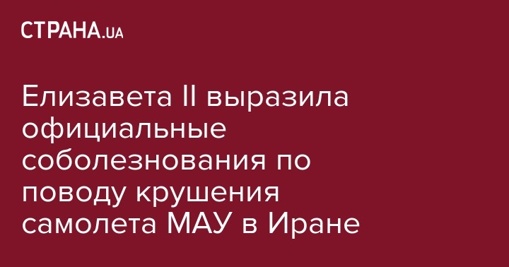 Королева Великобритании Елизавета II выразила соболезнования по поводу катастрофы украинского пассажирского самолета МАУ, который был сбит под Тегераном иранской ракетой.