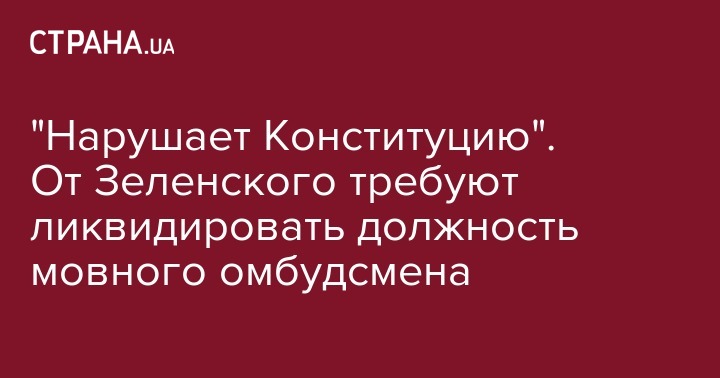 Украинского президента Владимира Зеленского просят, чтобы он отменил должность и права Уполномоченного по защите государственного языка, так как это не предусмотрено Конституцией Украины.
