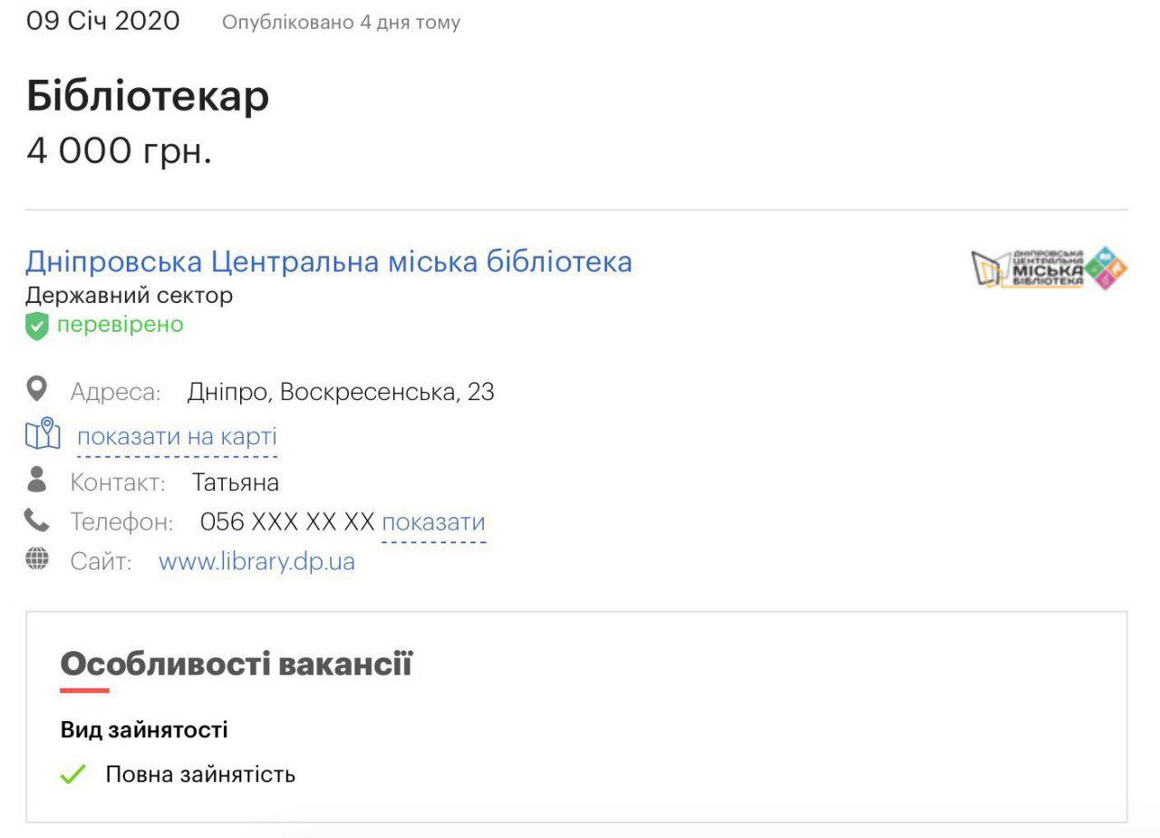 Библиотекарь в центральной библиотеке Днепра может претендовать на 4000.