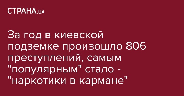 В Киевской подземке в 2019 году было зарегистрировано 806 преступлений. Одним из самых распространенных стало ношение наркотиков. Об этом сообщает "Левый берег" со ссылкой на ответ управления Нацполиции в Киеве.