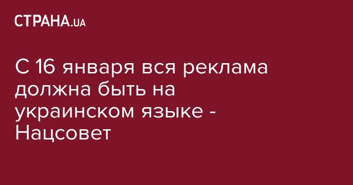 С 16 января вся реклама на телевидении, радио, а также в печатных изданиях в Украине должна быть выполнена исключительно на государственном языке. Такое сообщение появилось на сайте Нацсовета по вопросам телевидения и радиовещания.