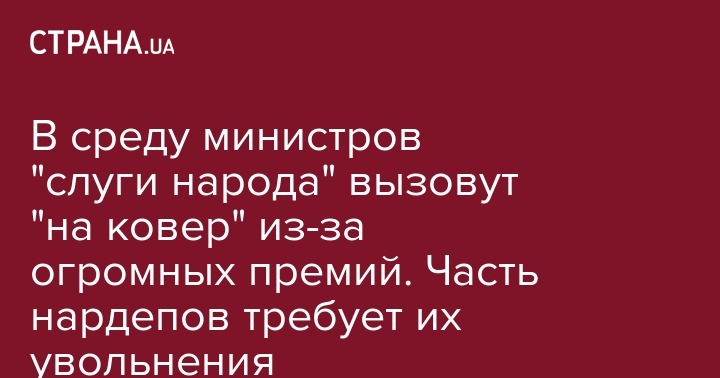 Спикер парламента Дмитрий Разумков сказал другим народным депутатам, что в среду, 15 января, в 19:00 на заседание фракции будут вызывать министров и спрашивать их о премиях. Об этом "Стране" рассказал источник в партии Слуга народа.