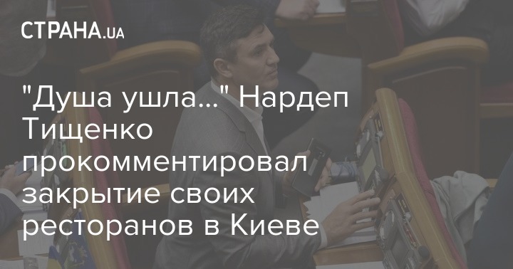 "Душа ушла..." Нардеп Тищенко прокомментировал закрытие своих ресторанов в Киеве
