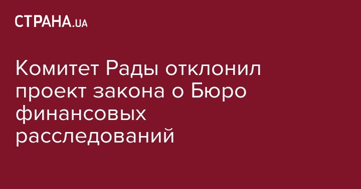 Финансовый комитет Верховной Рады 13 января рекомендовал не принимать закон о Бюро финансовых расследований, эту информацию подтвердил глава комитета Данил Гетманцев, но не назвал причин такого решения. Об этом сообщает НВ Бизнес.