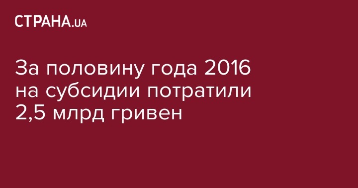 За половину года 2016 на субсидии потратили 2,5 млрд гривен