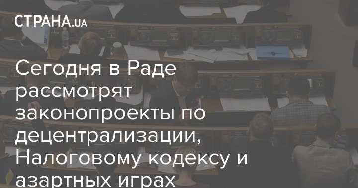 Сегодня, 15 января, в Верховной Раде рассмотрят законопроекты по децентрализации, Налоговому кодексу, а также в первом чтении проект документа по легализации азартных игр. Об этом свидетельствуют данные на сайте парламента.