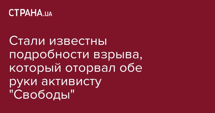 Стали известны подробности взрыва, который оторвал обе руки активисту "Свободы"