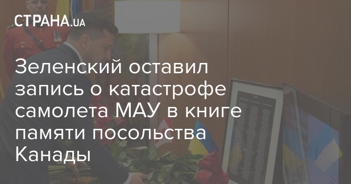Зеленский оставил запись о катастрофе самолета МАУ в книге памяти посольства Канады