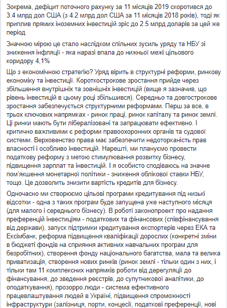 "Состояние экономики лучшее за годы. Сейчас экономика Украины растет высокими темпами - в II и III кварталах темпы роста ВВП превысили 4% и были одними из самых высоких в Европе.