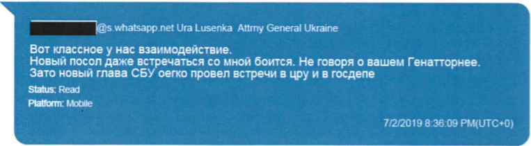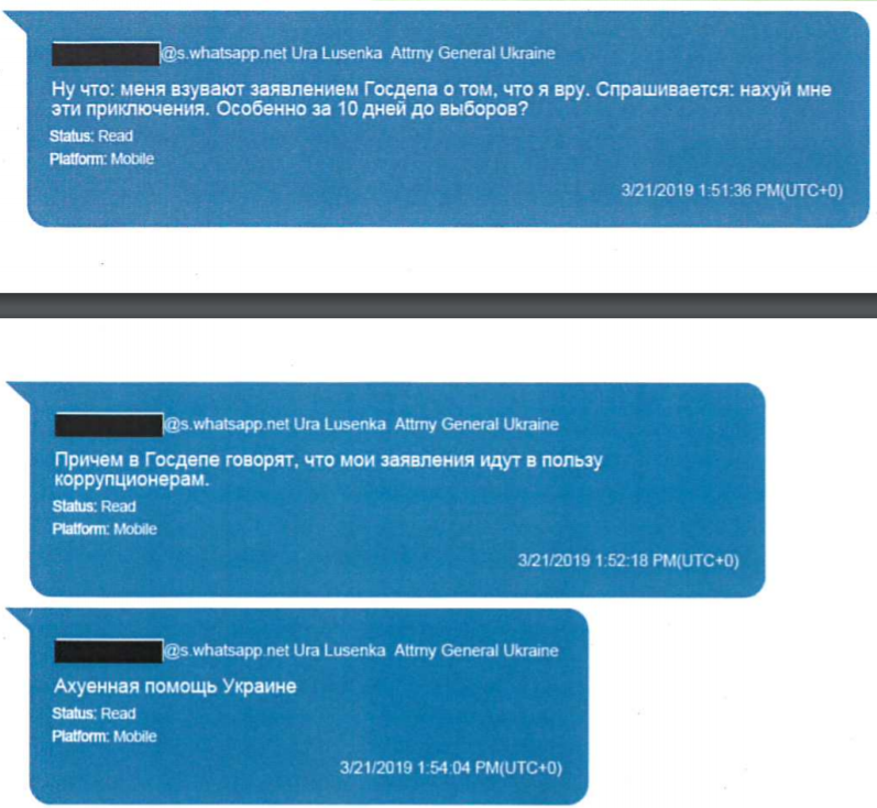 Причем итог этой атаки, как становится ясно из переписок, генпрокурора не особенно устраивает. На него обрушился Госдепартамент США, который защитил посла в Украине.