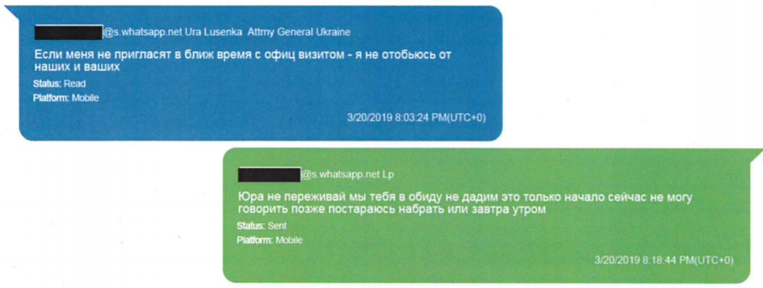 После этого в общении повисает почти недельная пауза - Парнас пишет, Луценко не отвечает. И начинает говорить только 20 марта - после выхода его интервью The Hill, в котором он разоблачает Йованович, обвиняя посла в давлении на украинские власти.