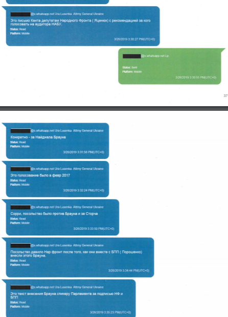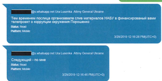 В начале марта, судя по перепискам, начинает накаляться конфликт между людьми Порошенко и посольством. Сообщения Луценко становятся тревожнее. Он говорит, что оппоненты начали открытую войну против антикоррупционного спецпрокурора Назара Холодницкого, лояльного Банковой, а также людей Порошенко в Верховном суде.