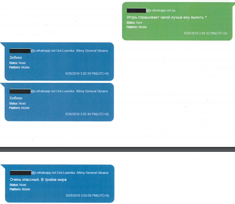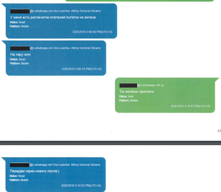 А вот более интересных бумаг Луценко Парнасу не показывает. Говоря, что у него есть платежка фирме сына Байдена из Украины, генпрокурор пишет: "Передам через нового посла".