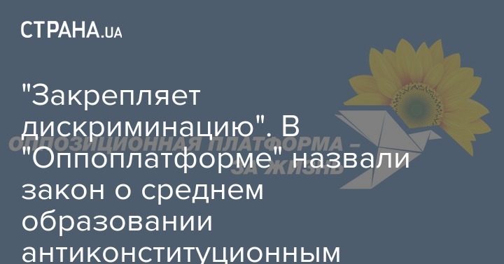 Партия "Оппозиционная платформа - За жизнь" в связи с принятием 16 января парламентом закона о среднем образовании выступила с заявлением, в котором назвала закон антиконституционным и делающим из русскоязычных граждан Украины людей второго сорта.