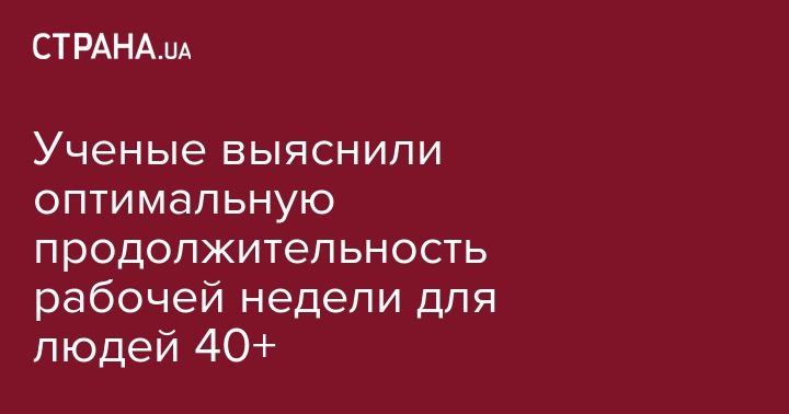 Для людей старше 40 лет, оптимальная продолжительность рабочей недели, с научной точки зрения, составляет 25 часов в неделю. В случае "переработки", у этой возрастной категории резко повышается шанс на ухудшение интеллекта. Исследование проведено в февраля 2016 года сотрудниками Мельнбурнского института прикладных экономических и социальных исследований, передает УНН.