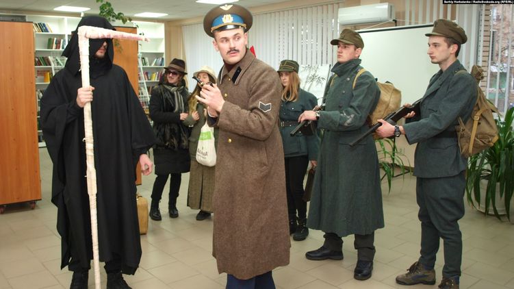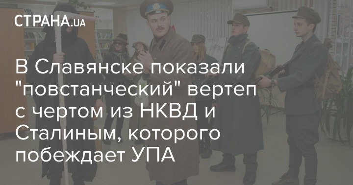 В Славянске Донецкой области, где проходили ожесточенные бои в 2014 году, члены молодежного Националистического Конгресса показали на Рождество необычный "повстанческий" вертеп. В представлении, которое прошло в центральной библиотеке города 10 января, участвовали "Сталин", "черт" из НКВД, "звезда", украинские повстанцы и другие персонажи.