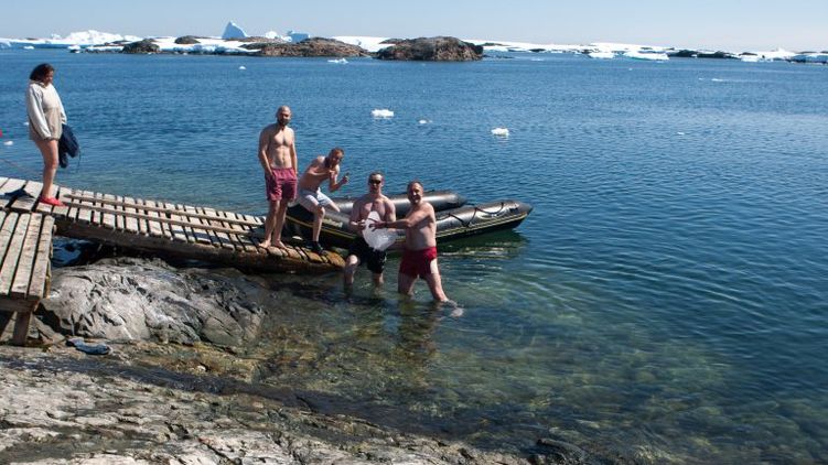 Украинские полярники купаются на крещение. Фото: uac.gov.ua