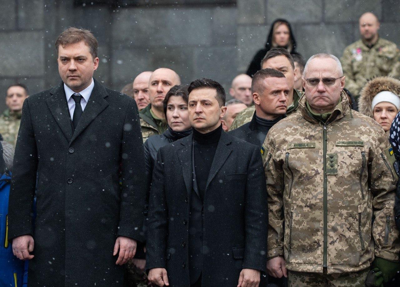 В понеедльник 20 января президент Украины Владимир Зеленский принял участие в мероприятиях у здания Министерства обороны в память о военнослужащих, погибших в боях за донецкий аэропорт.