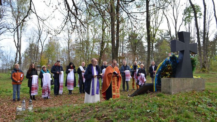 Мемориальная доска на могиле была посвящена членам УПА - жителям окрестных сел, которые погибли в бою с НКВД в ближних лесах 2 и 3 марта 1945 года. Неизвестные сбросили обломки таблички и полотенца в яму.