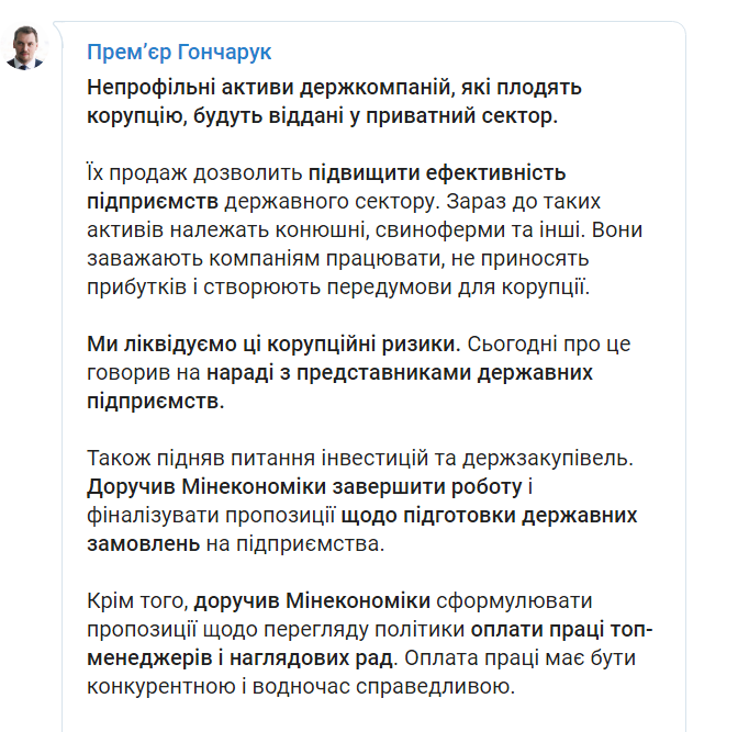 Об этом глава Кабмина написал в своем Telegram-канале "Прем’єр Гончарук".