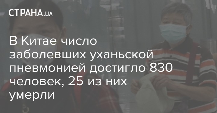 В Китае число заболевших уханьской пневмонией достигло 830 человек, 25 из них умерли