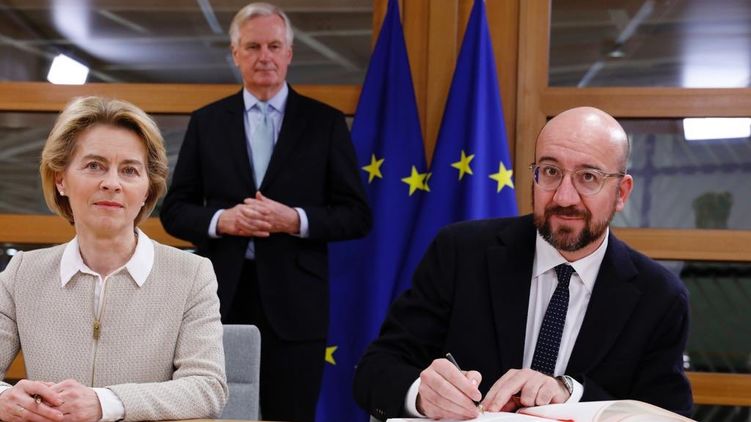 Глава Европейского совета Шарль Мишель и председатель Европейской комиссии Урсула фон дер Ляйен поставили свои подписи под соглашением о выходе Великовбритании из состава ЕС. После этого документ будет ждать ратификации в Европарламенте.