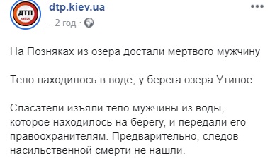В озере на Позняках был обнаружен труп. Фото: dtp.kiev.ua
