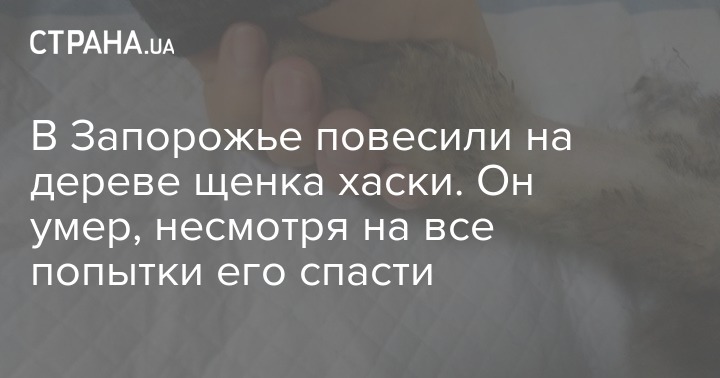 В Запорожье повесили на дереве щенка хаски. Он умер, несмотря на все попытки его спасти