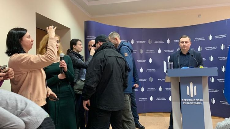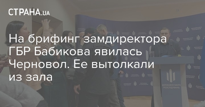 В Киеве проходит брифинг замдиректора Госбюро расследований Александра Бабикова, который занял должность на конкурсной основе. Мероприятие задержалось из-за присутствующей в зале экс-нардепа Татьяны Черновол и протестного митинга под окнами ведомства.