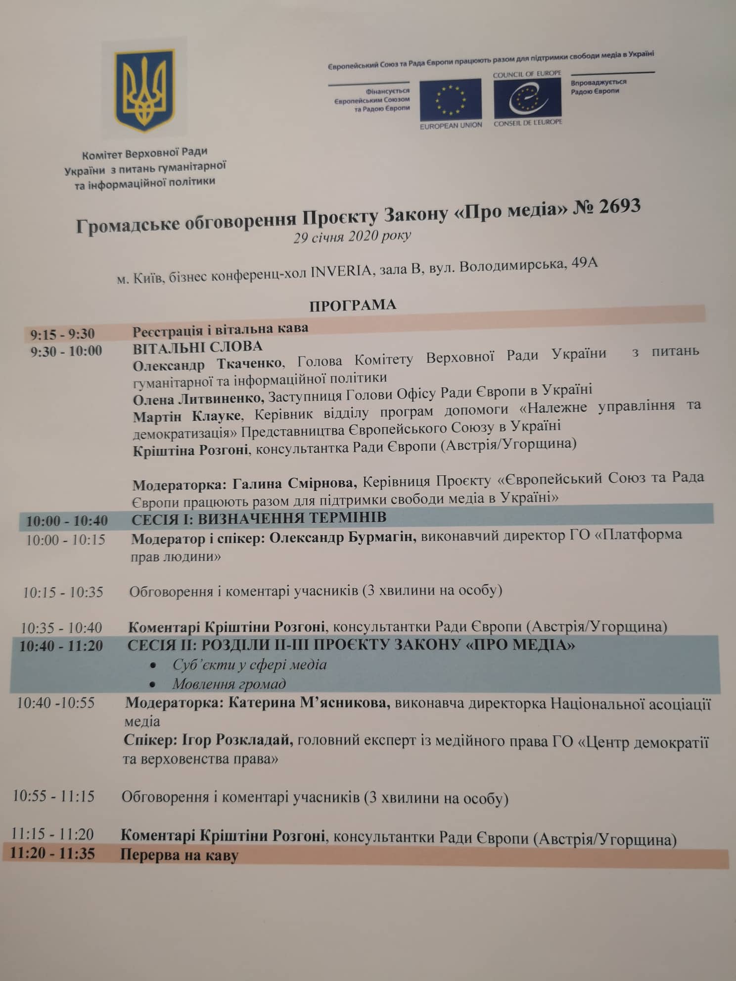 Общественные слушания закона о медиа проходят в Киеве 29 января