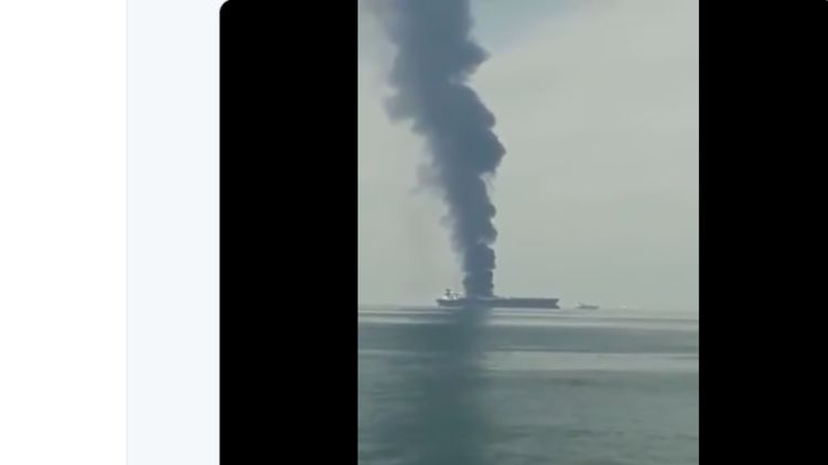 "Нефтяной танкер горит у побережья Шарджи в Объединенных Арабских Эмиратах" - передал молнию канал и показал видео пожара.
