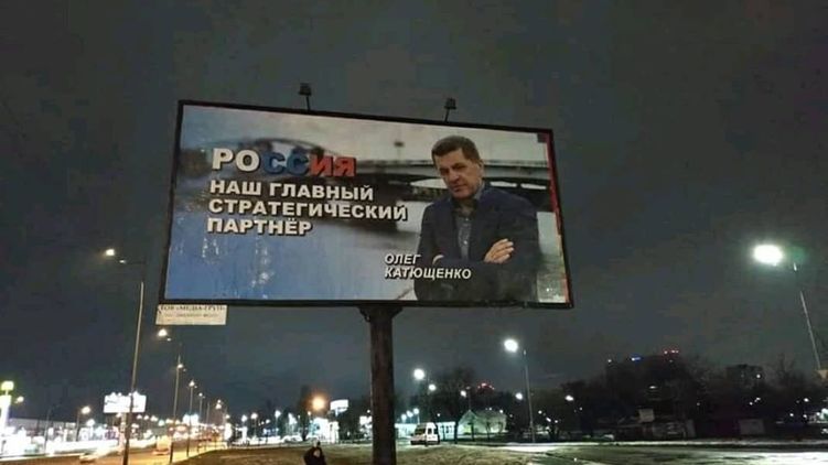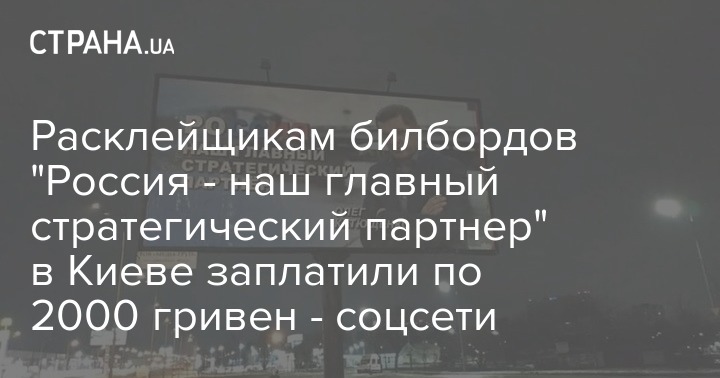 Сотрудники службы безопасности Украины задержали трех расклейщиков билбордов, которые согласились за 2 тысячи гривен поклеить рекламные плакаты с надписью "Россия - наш главный стратегический партнер" с подписью предпринимателя Олега Катющенко.