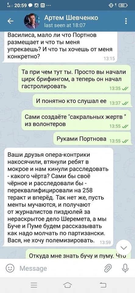 3. В МВД, судя по переписке Артема Шевченко, полагают, что заказчики убийства Шеремета находятся в контрразведке СБУ. Правда, означает ли это, что вскоре последует предъявление подозрений конкретным работникам спецслужбы – пока вопрос открытый.