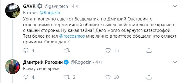 Глава пресс-службы космической госкорпорации Владимир Устименко в этой же ветке обсуждения заявил, что результаты будут представлены после расследования.
