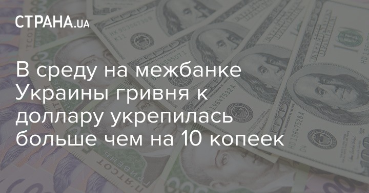 В среду на межбанке Украины гривня к доллару укрепилась больше чем на 10 копеек