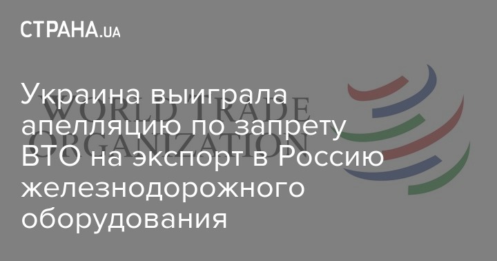 Украина выиграла апелляцию по обжалованию решения Всемирной торговой организации (ВТО). Решение касается запрета Российской Федерации импортировать украинские вагоны и железнодорожное оборудование.