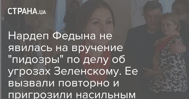 "Поскольку народный депутат Украины София Федына 6 февраля 2020 не явилась по вызову и не сообщила об уважительных причинах неявки, она повторно вызывается следователем Государственного бюро расследований по поручению Генерального прокурора на 11:00 12 февраля 2020 для проведения процессуального действия - вручение письменного уведомления о подозрении", - сказано в сообщении.