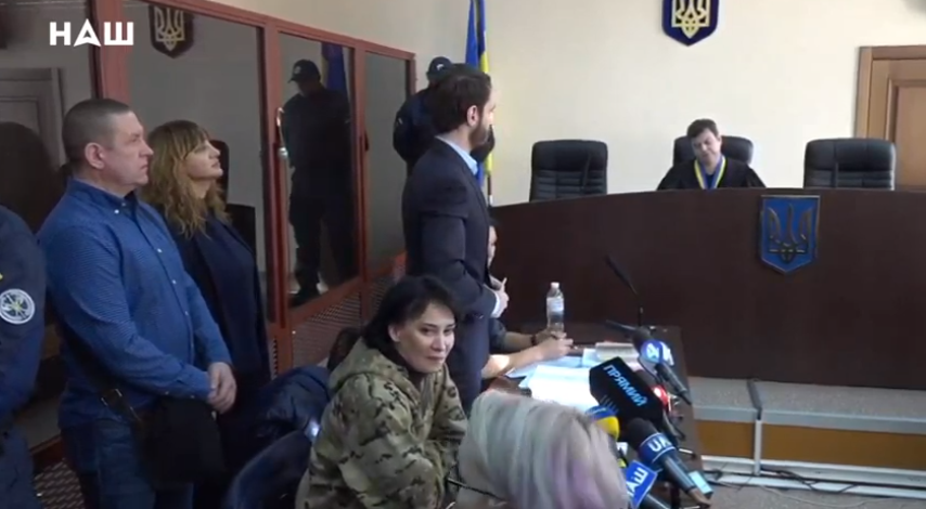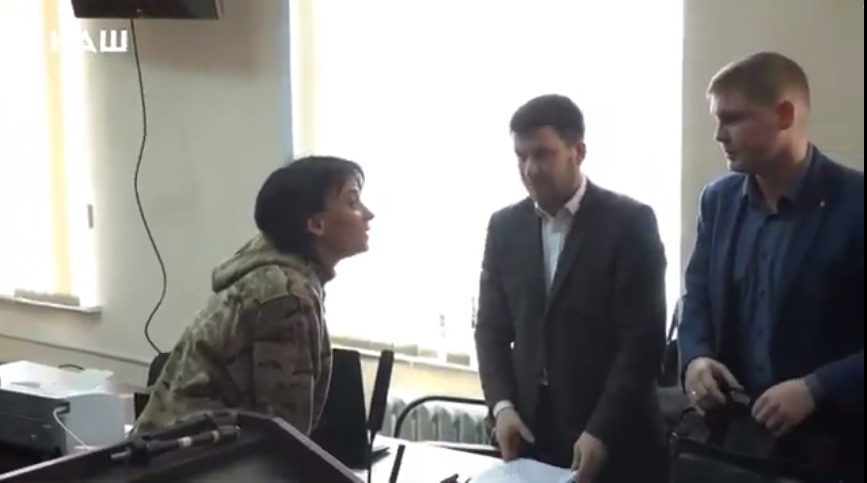"Мы сейчас слабее, чем в 2014 году - заявляет она - Я буду судить президента". Обращает внимание на обручальное кольцо прокурора: "У вас, наверное, детки есть? Бумажки собираете, дело шьете. Да мне срать на ваши бумажки". Ей аплодируют после этих слов. Кричат "Ганьба, прокурору!"