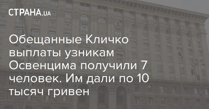 В Киеве семь бывших узников Аушвица (Освенцима) которые дожили до наших дней, получили обещанные мэром столицы Виталием Кличко единоразовые выплаты в размере 10 тысяч гривен.