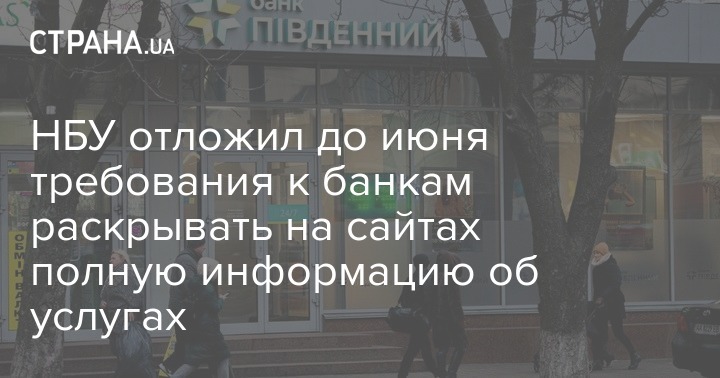 НБУ отложил до июня требования к банкам раскрывать на сайтах полную информацию об услугах