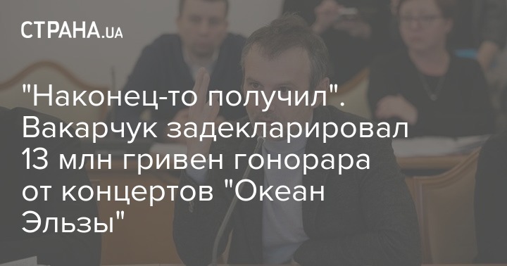 Народный депутат Украины от фракции "Голос" Святослав Вакарчук задекларировал 12,9 млн гривен гонорара, полученные за тур в составе группы "Океан Эльзы" в 2016-2017 годах. С этой суммы будут уплачены все необходимые налоги.