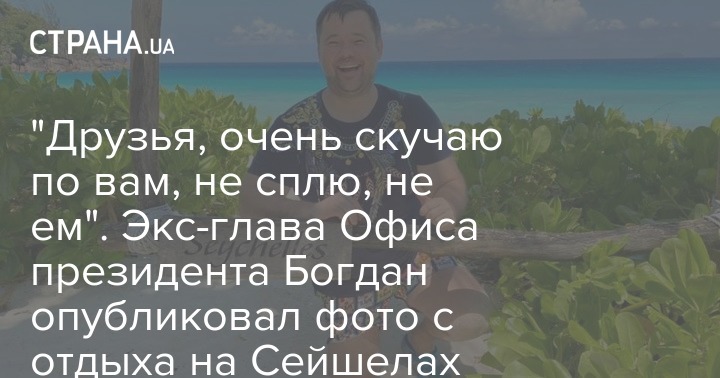 Андрей Богдан, которого 11 февраля Владимир Зеленский уволил с поста главы Офиса президента Украины, опубликовал фото с отдыха на Сейшелах.