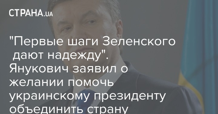 "Первые шаги Зеленского дают надежду". Янукович заявил о желании помочь украинскому президенту объединить страну