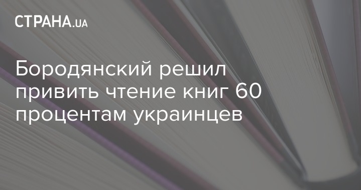 Глава министерства культуры, молодежи и спорта Украины Владимир Бородянский заявил, что в ведомстве работают над тем, чтобы повысить популярность чтения книг среди украинцев до 60%.