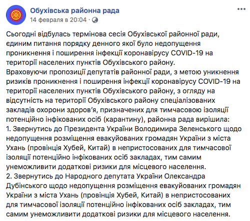 Депутаты призывали не размещать у себя в районе эвакуированных, поскольку на территории Обуховского района отсутствуют специализированные учреждения здравоохранения, предназначенные для временной изоляции потенциально инфицированных (карантина).