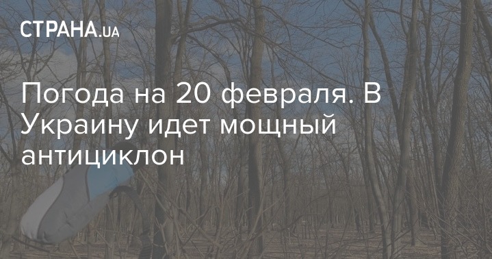 "Пока циклон с интересным женским именем Wiltrud бушует вблизи Исландии, Великобритании и Скандинавии и нагоняет туда ураганные ветры, в Украине погоду, 20 февраля, будет определять его антипод, антициклон", - обещает синоптик.