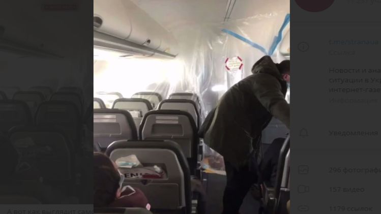 Самолет, на котором украинцы прилетели из Китая. Скриншот: Telegram