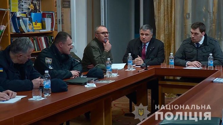 В Новых Санжарах прошло совещание с участием премьер-министра Алексея Гончарука, главы МВД Арсена Авакова и председателя Нацполиции Игоря Клименко. Последний изложил подробности о беспорядках в поселке.